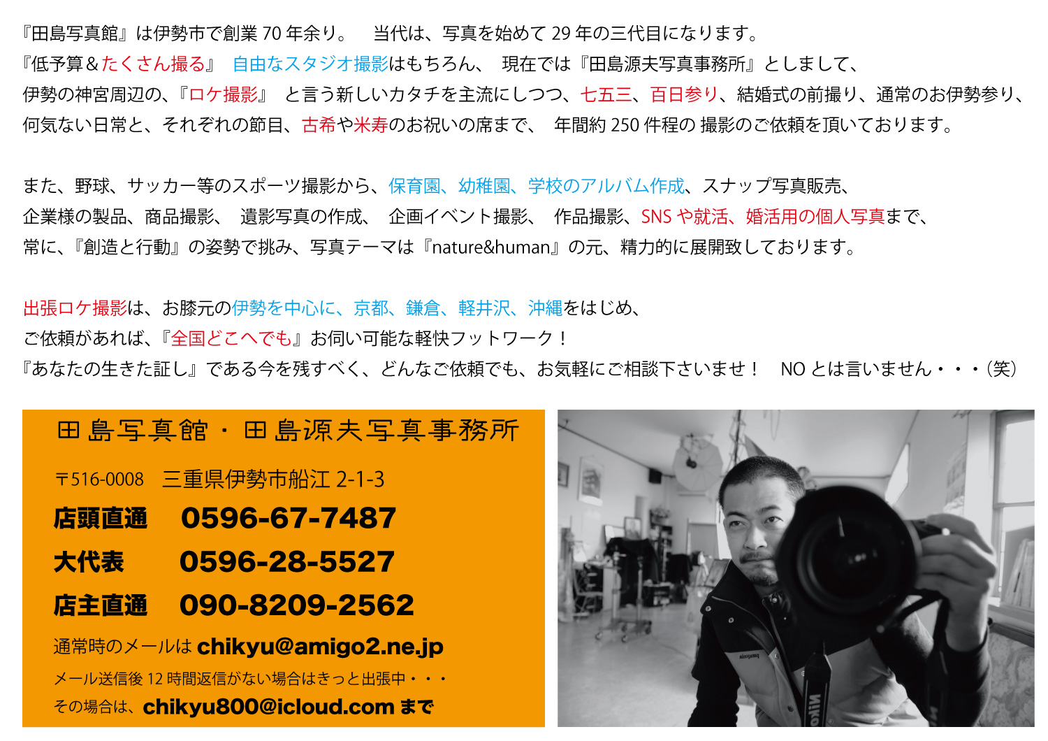 田島写真館・田島源夫写真事務所 予約フ